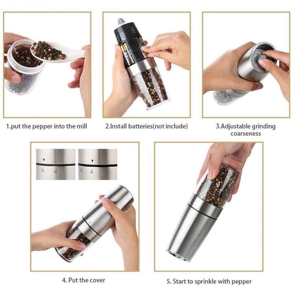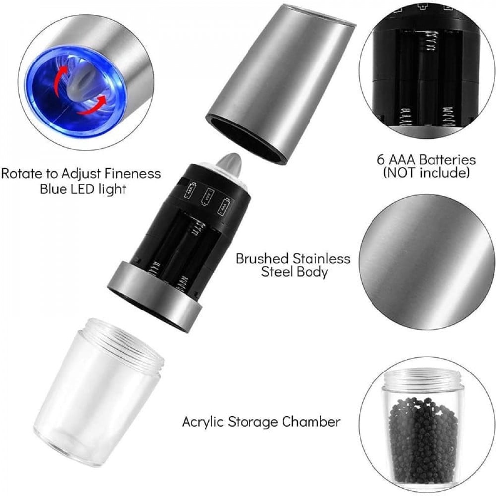 مطحنة كهربائية للتوابل ، طاحونة مولر مع ضوء LED، زوج واحد