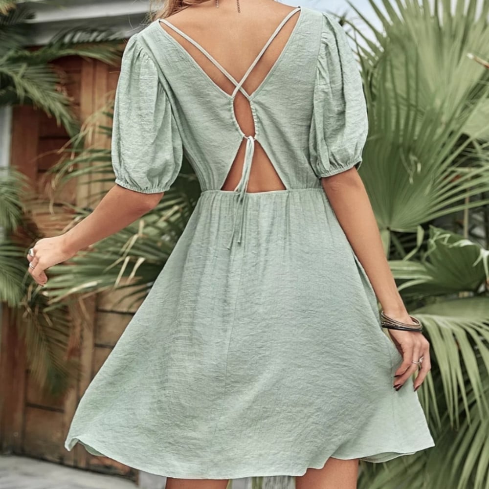 فستان نسائي قصير بأكمام قصيرة ، لون تفاحي