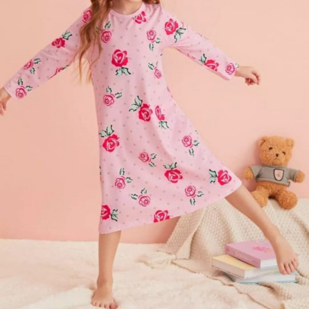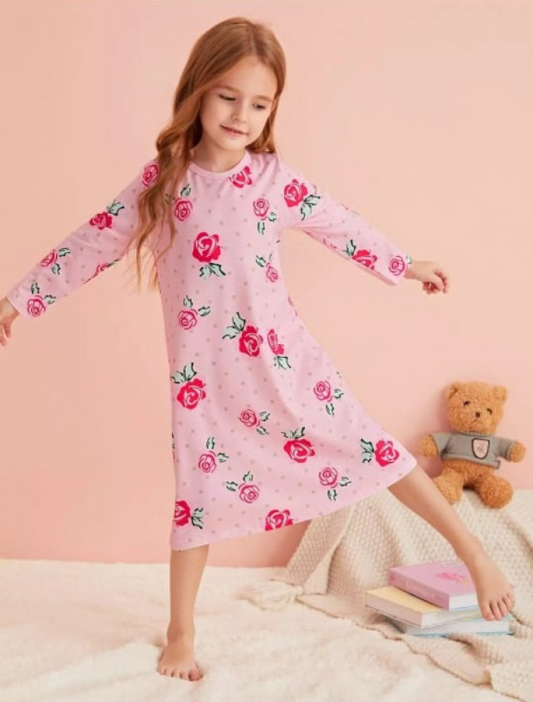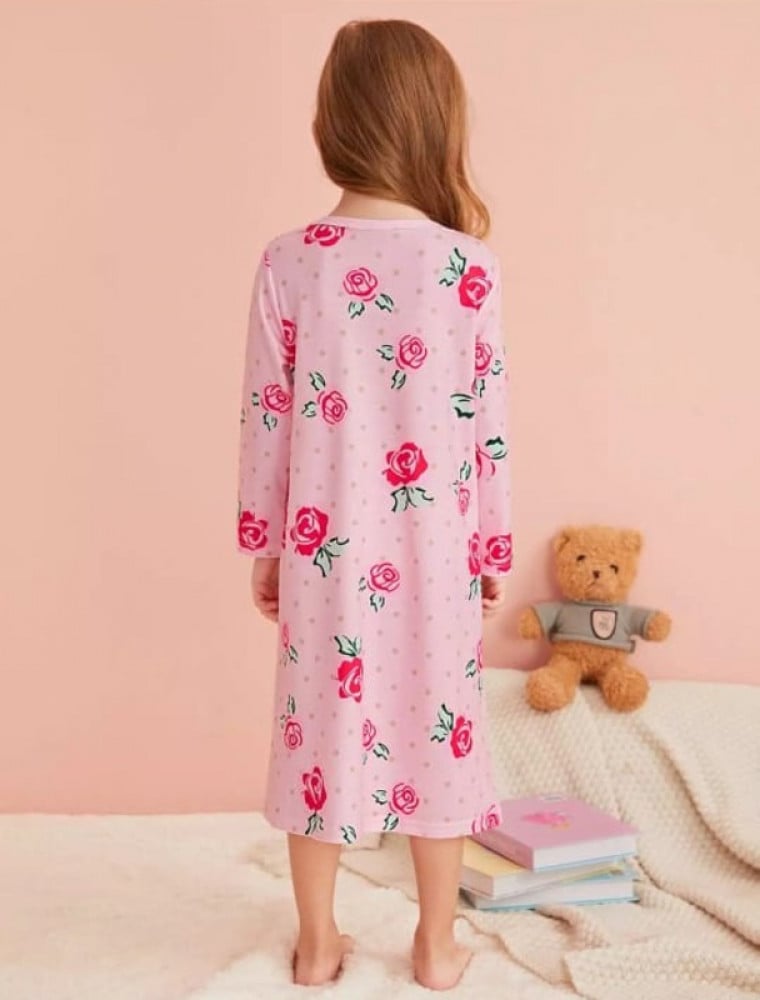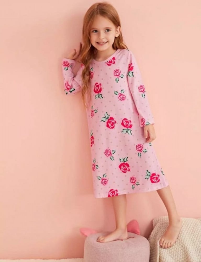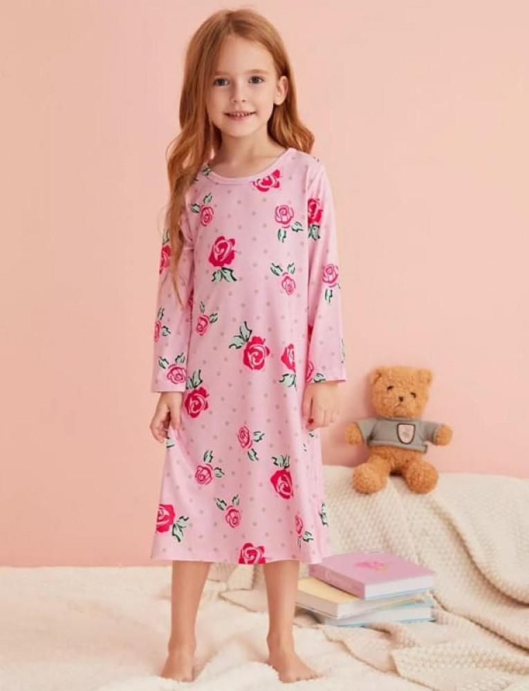 فستان لياي بناتي بنقاط البولكا ونمط الزهور ، لون وردي
