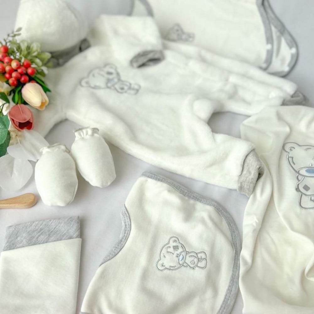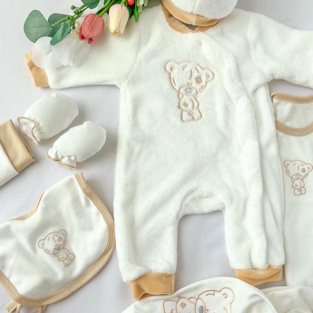 طقم شتوي متكامل لدفء الطفل مكون من افرول خامة ناعمة جدًا ولطيفة.