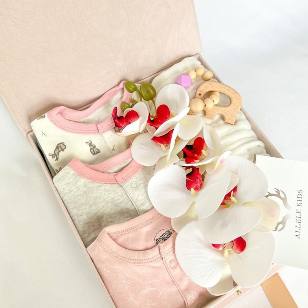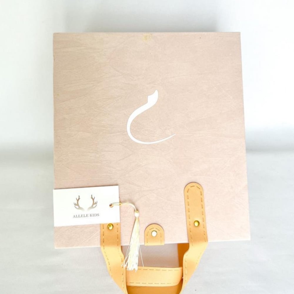 عباره عن بوكس مخمل مع طباعة اسم المولودة