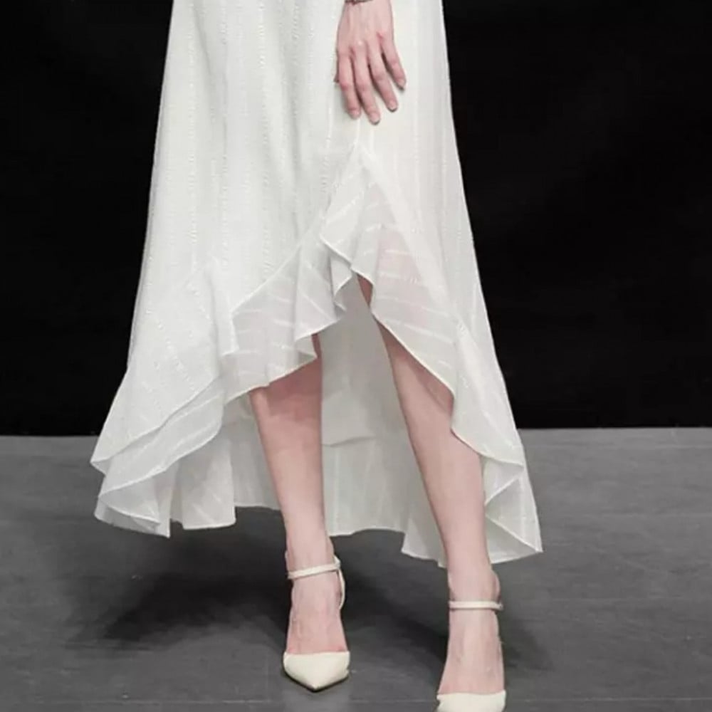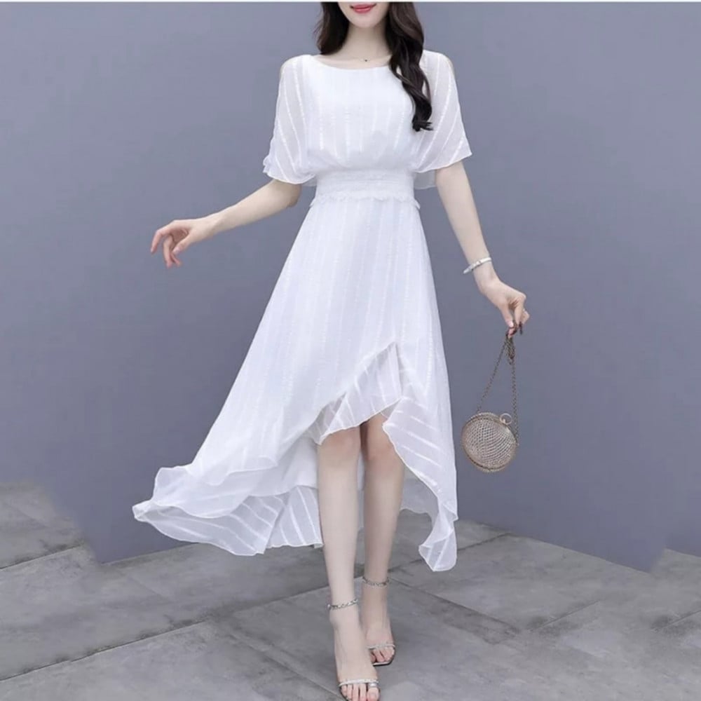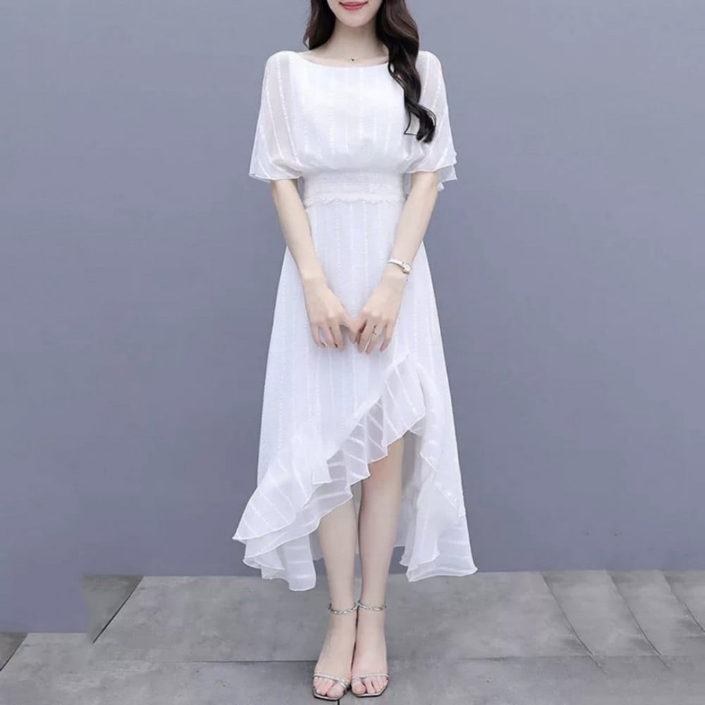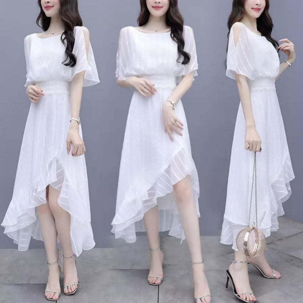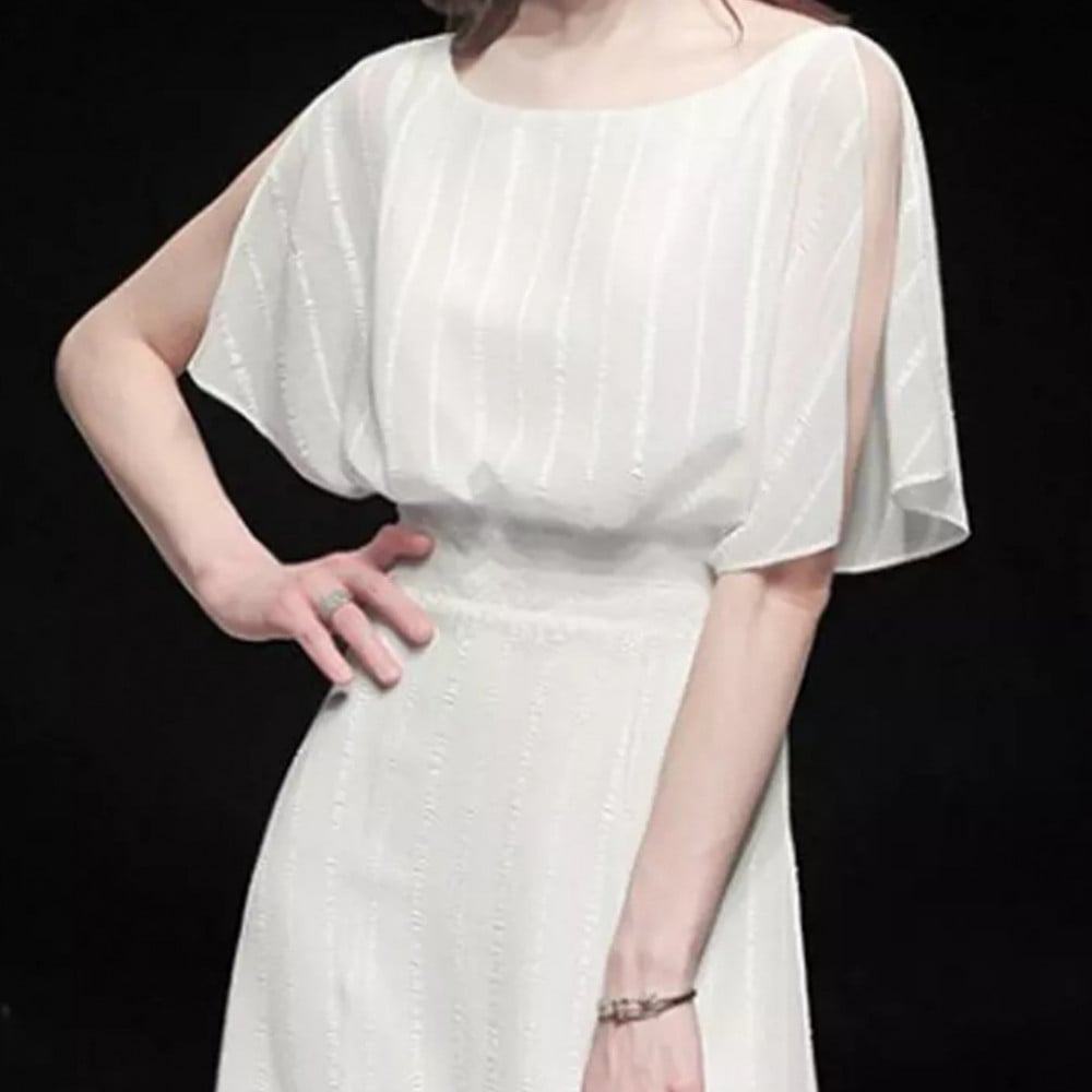 فستان نسائي شيفون بتصميم مميز واكمام واسعة ، اون أبيض