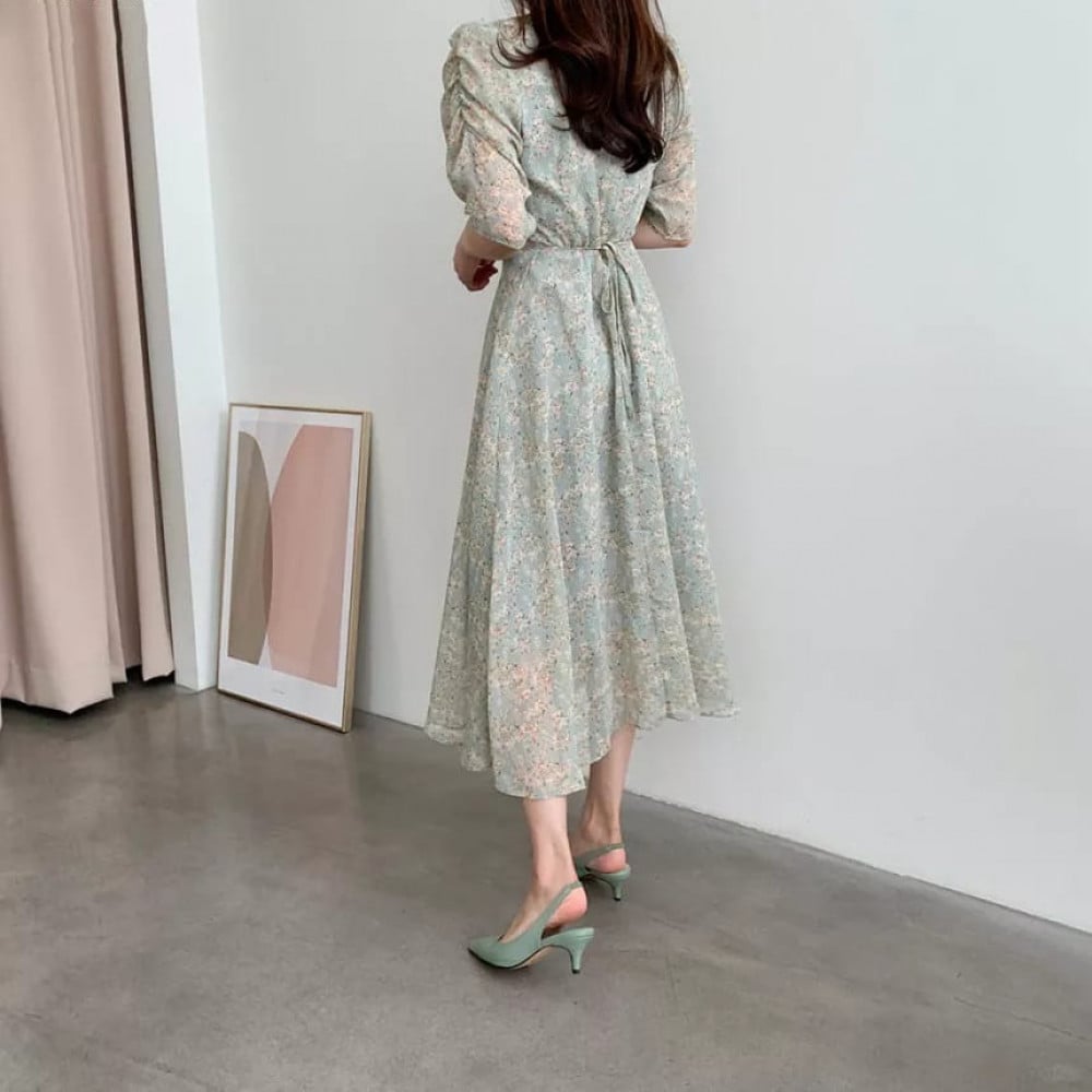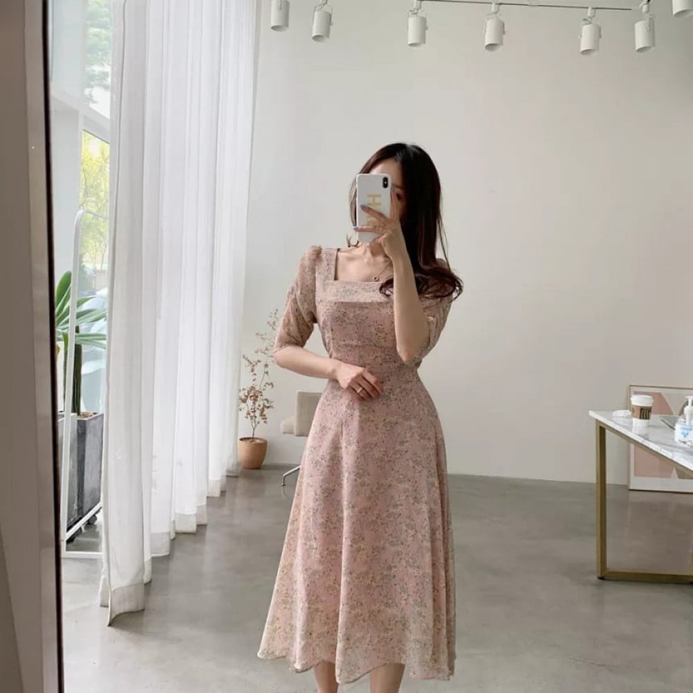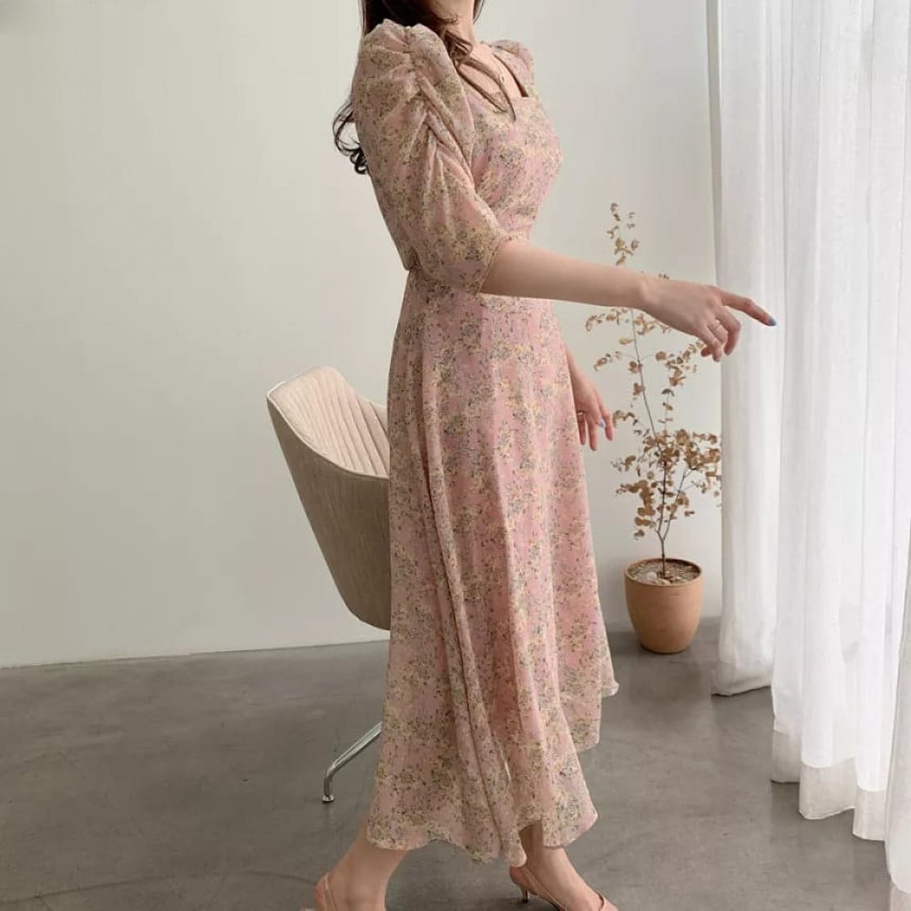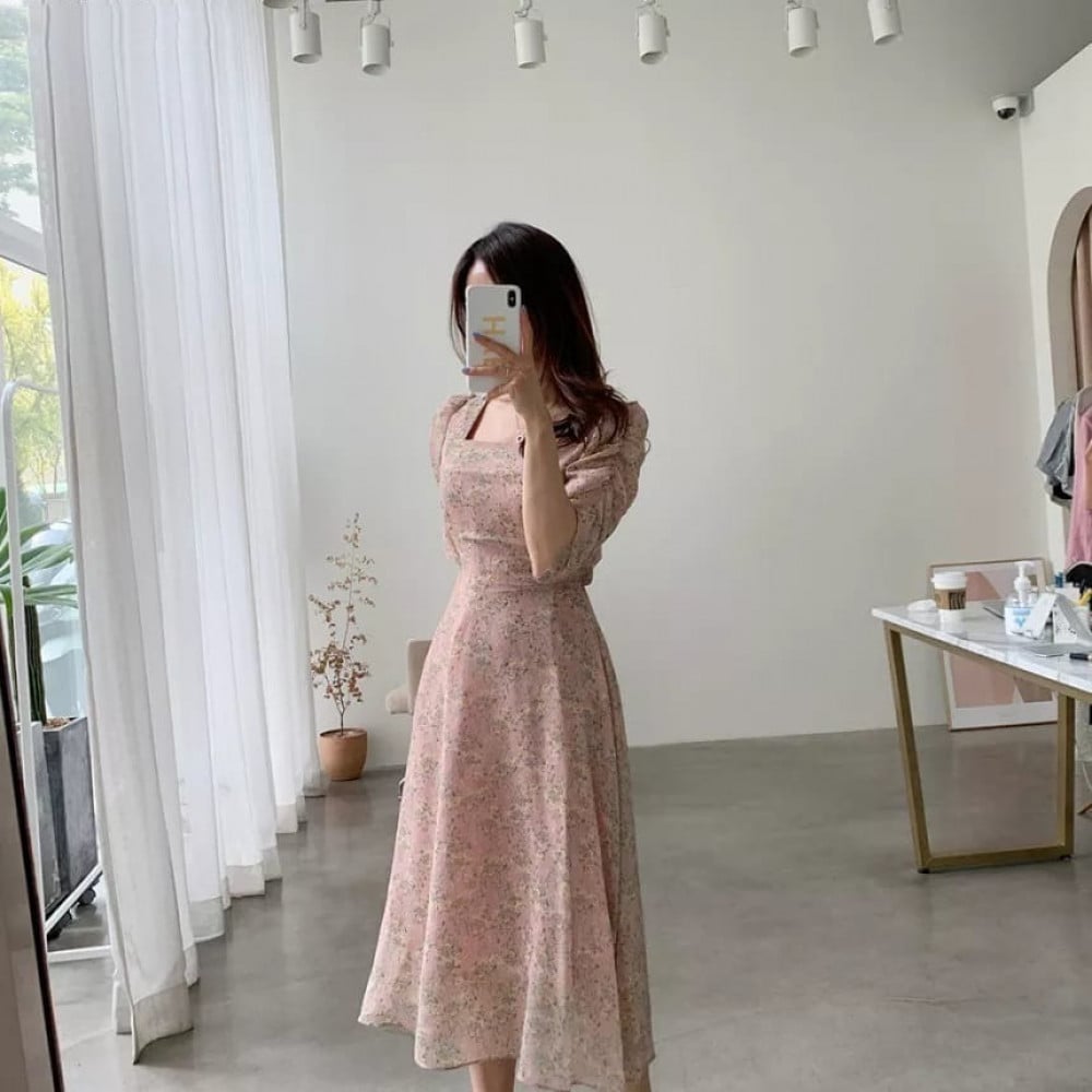 فستان نسائي انيق باكمام منتفخة ، على الطراز الكوري ، متوفر بلونين