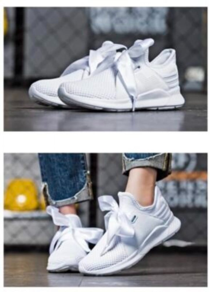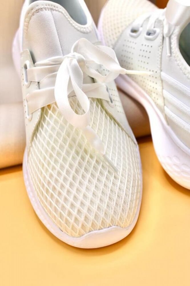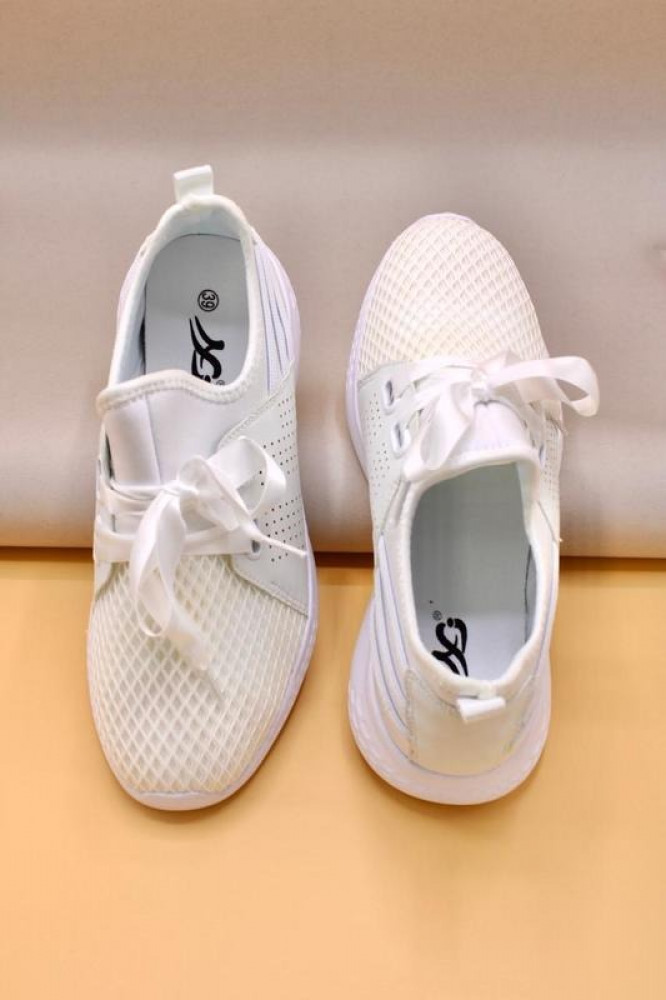 حذاء سبورت ابيض بنمط فيونكات ، تصميم شبكة ، عملي