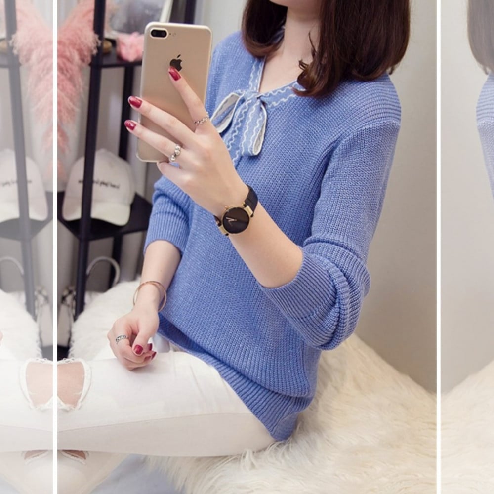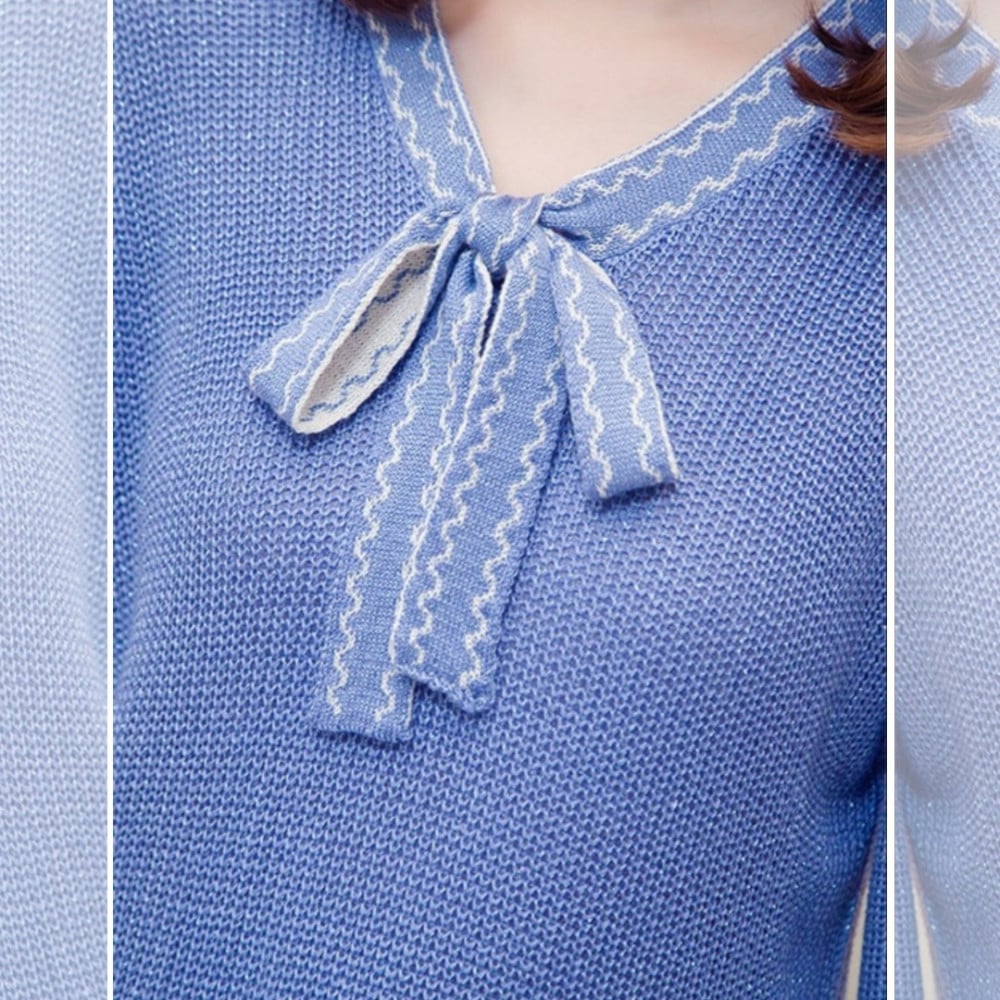 بلوفر تريكو نسائي ناعم ، بتصميم أربطة ، لون أزرق