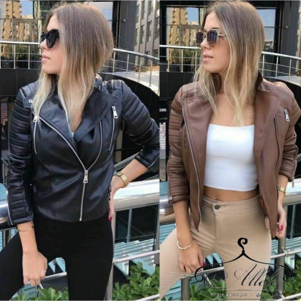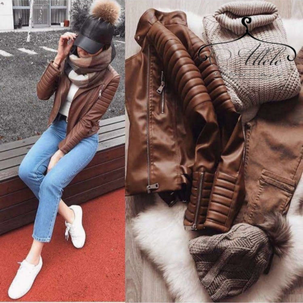 جاكيت جلدي نسائي ، أناقة وجودة عالية ، لون غزالي
