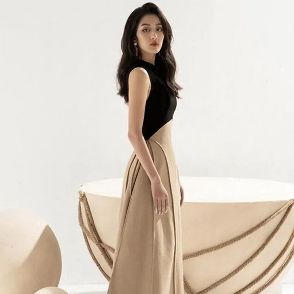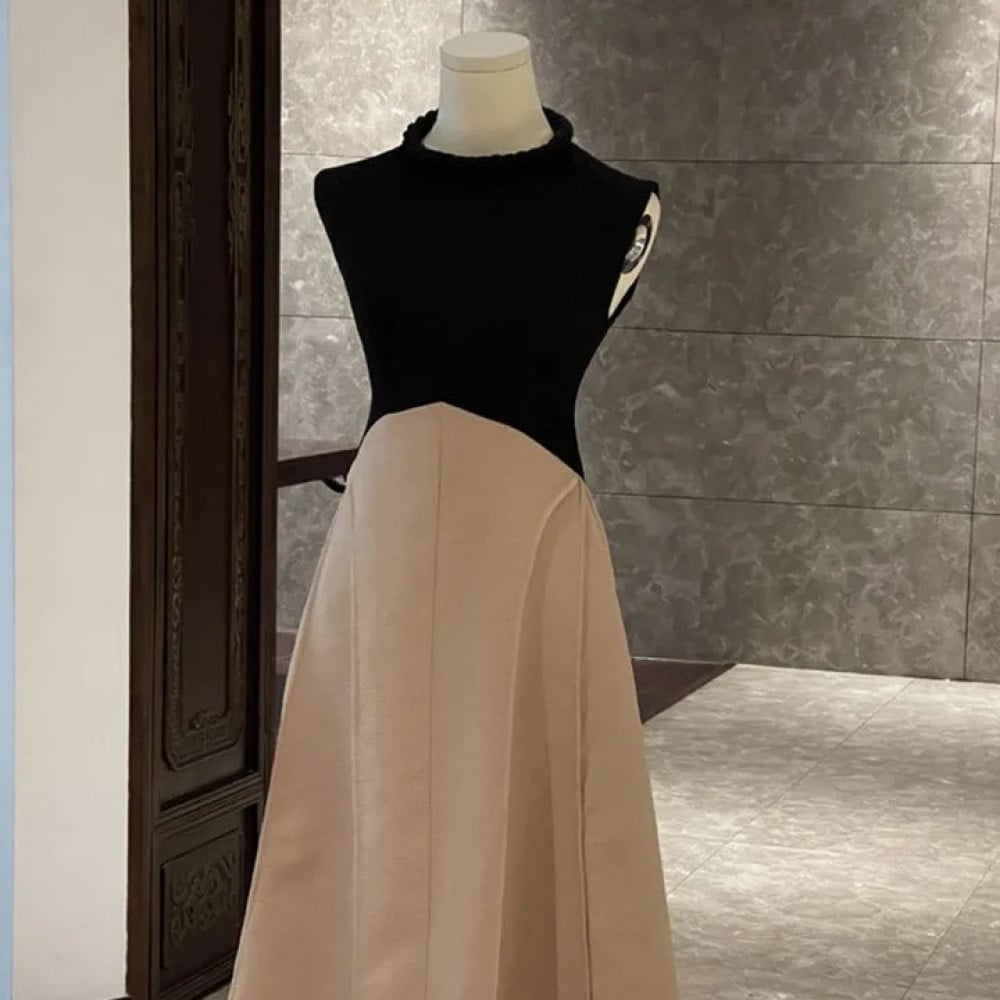 فستان نسائي أنيق، تصميم خصر عالي ، مزين بخطوط ناعمة ، جودة عالية
