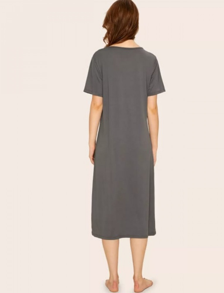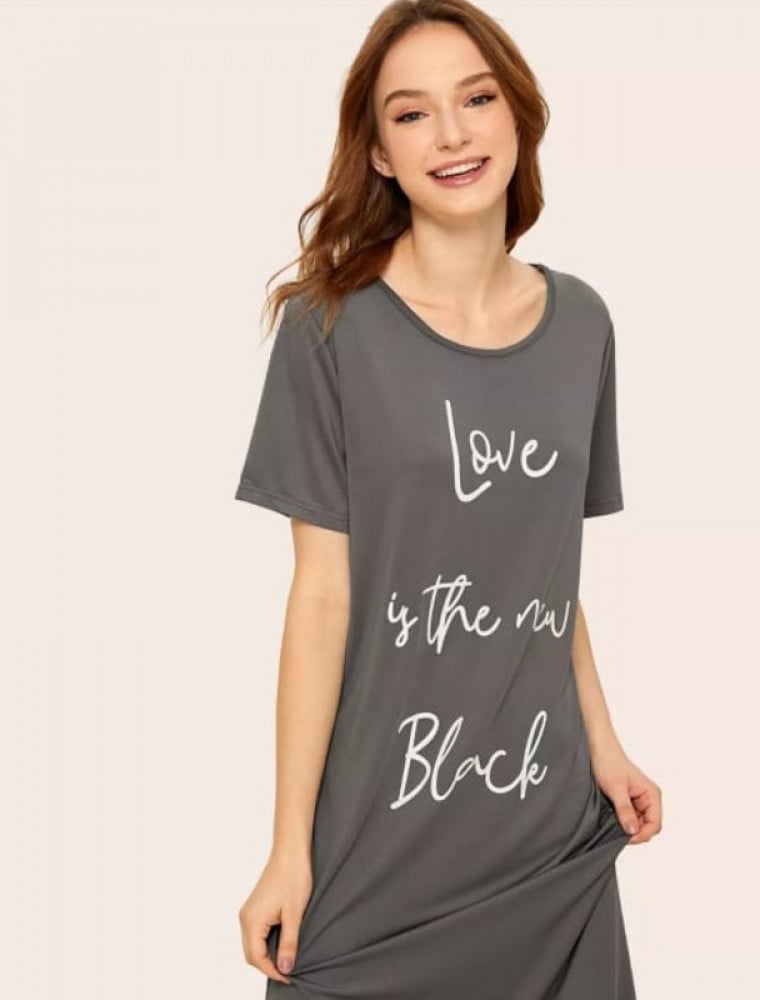 فستان ليلي نسائي بطباعة عبارة ، لون رمادي