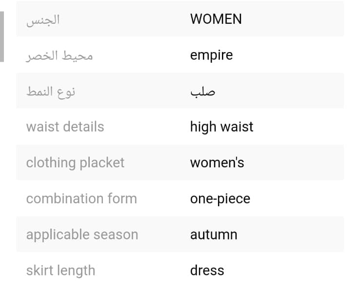 المقاس بالسنتميتر : ( الصدر : 92 سم ، الخصر : 49 سم ، طول الأكمام : 61 سم ، الطول العام : 124 سم )