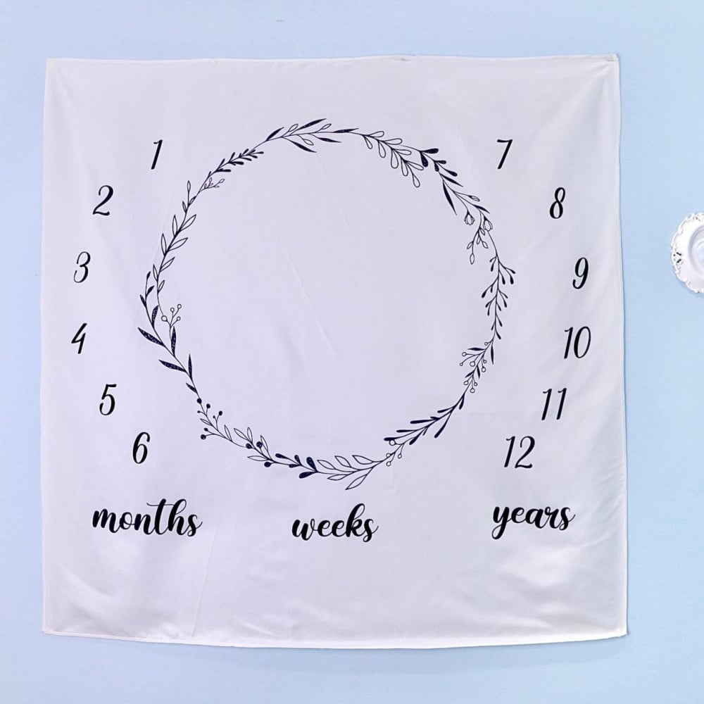 حصيرة تحديد العمر بطباعة أسم المولود مع حلقات خشبيه وسهم لتخليد صور ذكرى لطفلك
