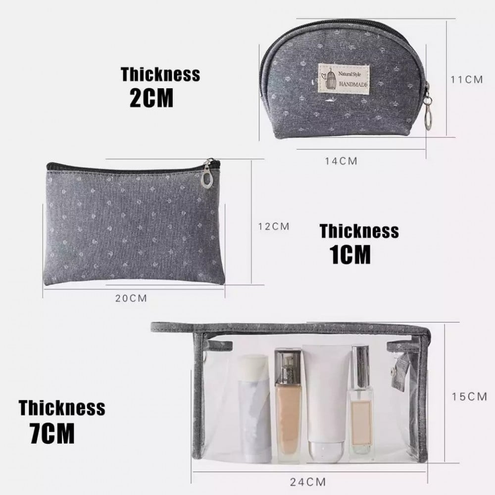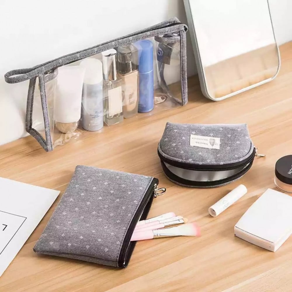 حقيبة مكياج ، 3 قطع ، لون رمادي