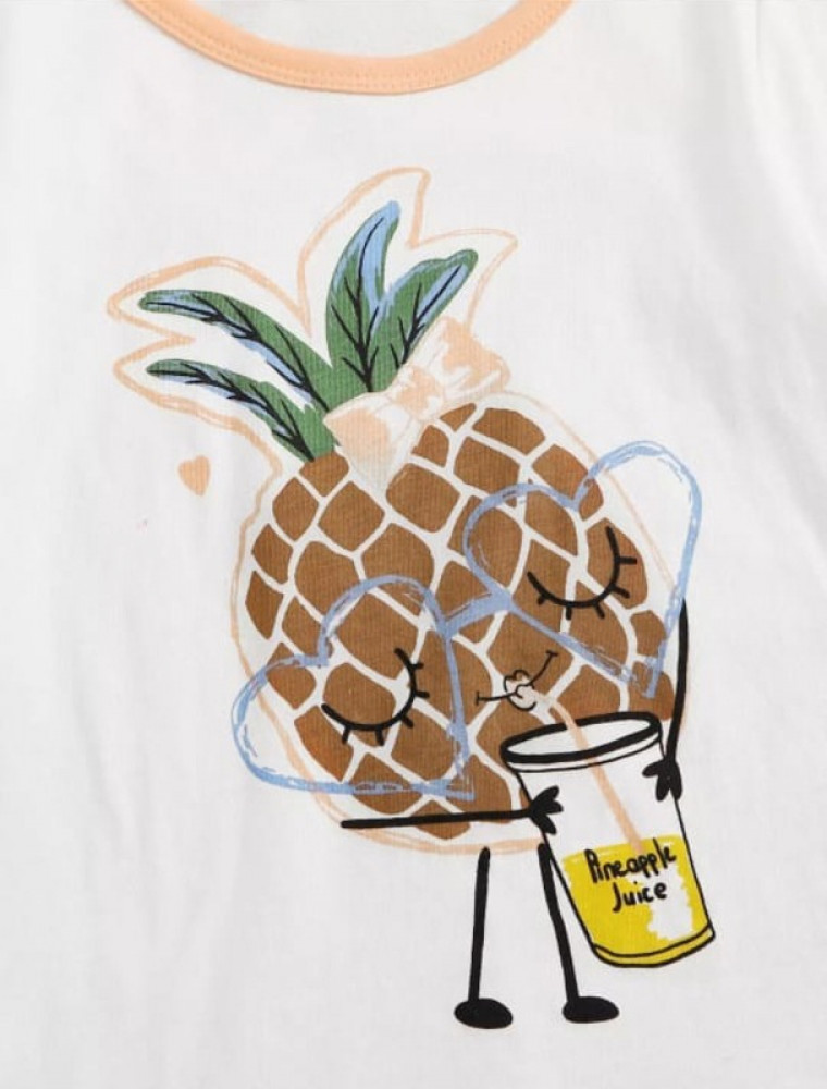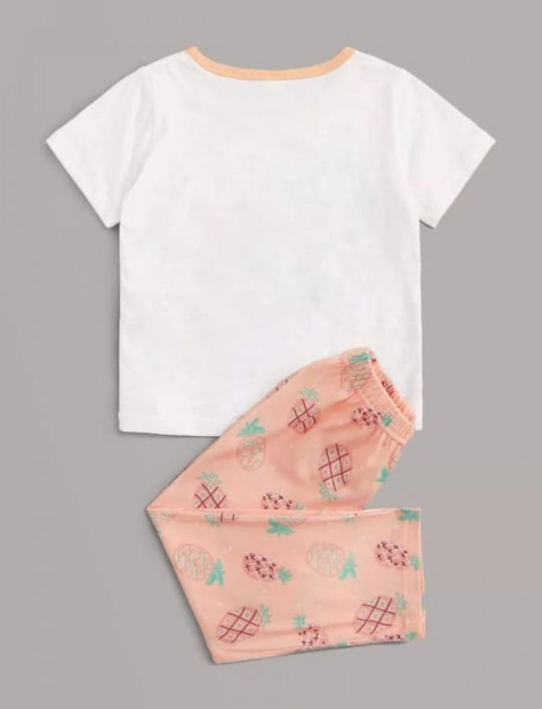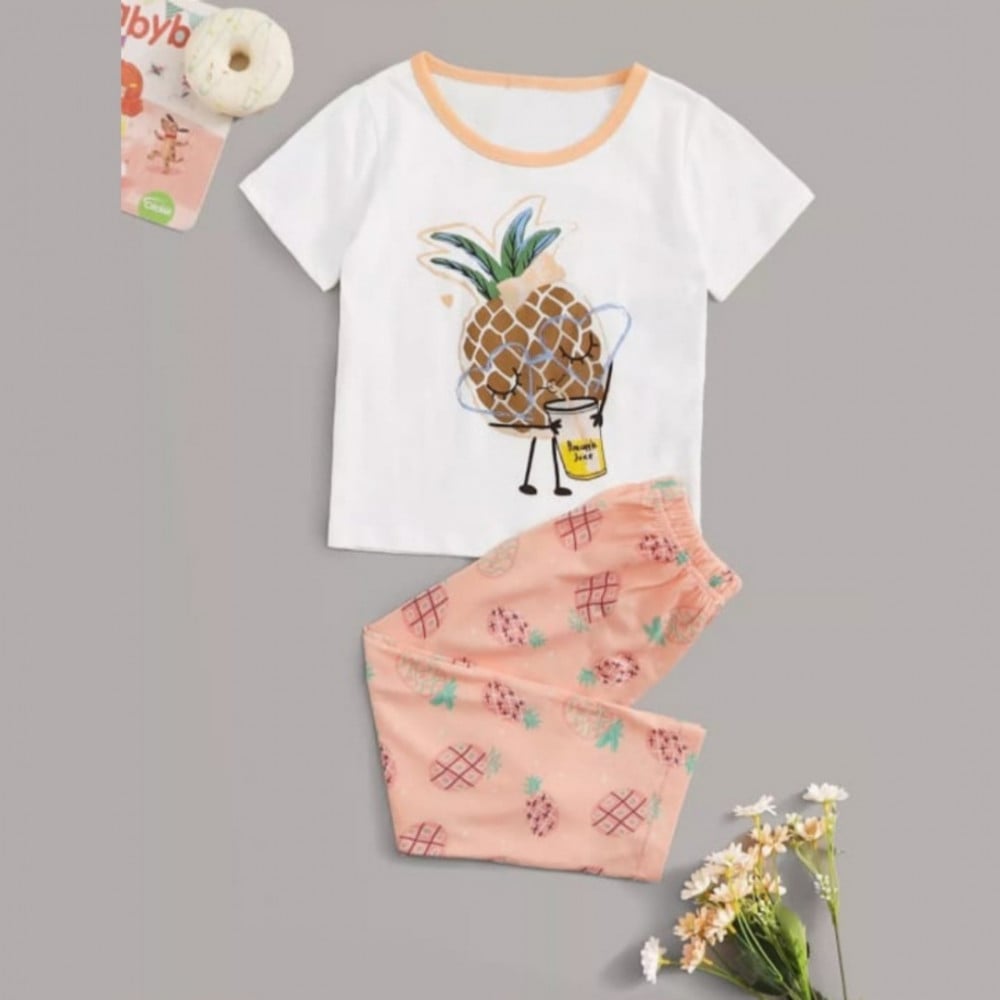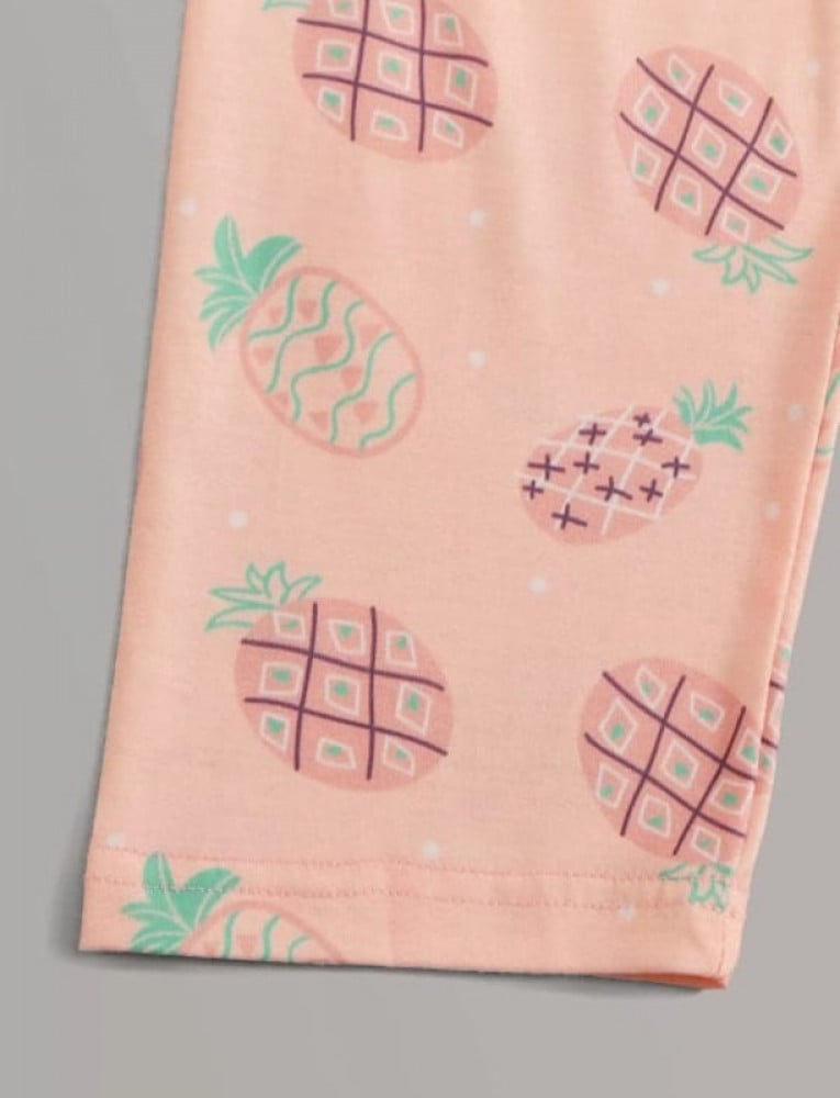 بيجامة بناتي بتصميم الأنناس ، لون خربزي