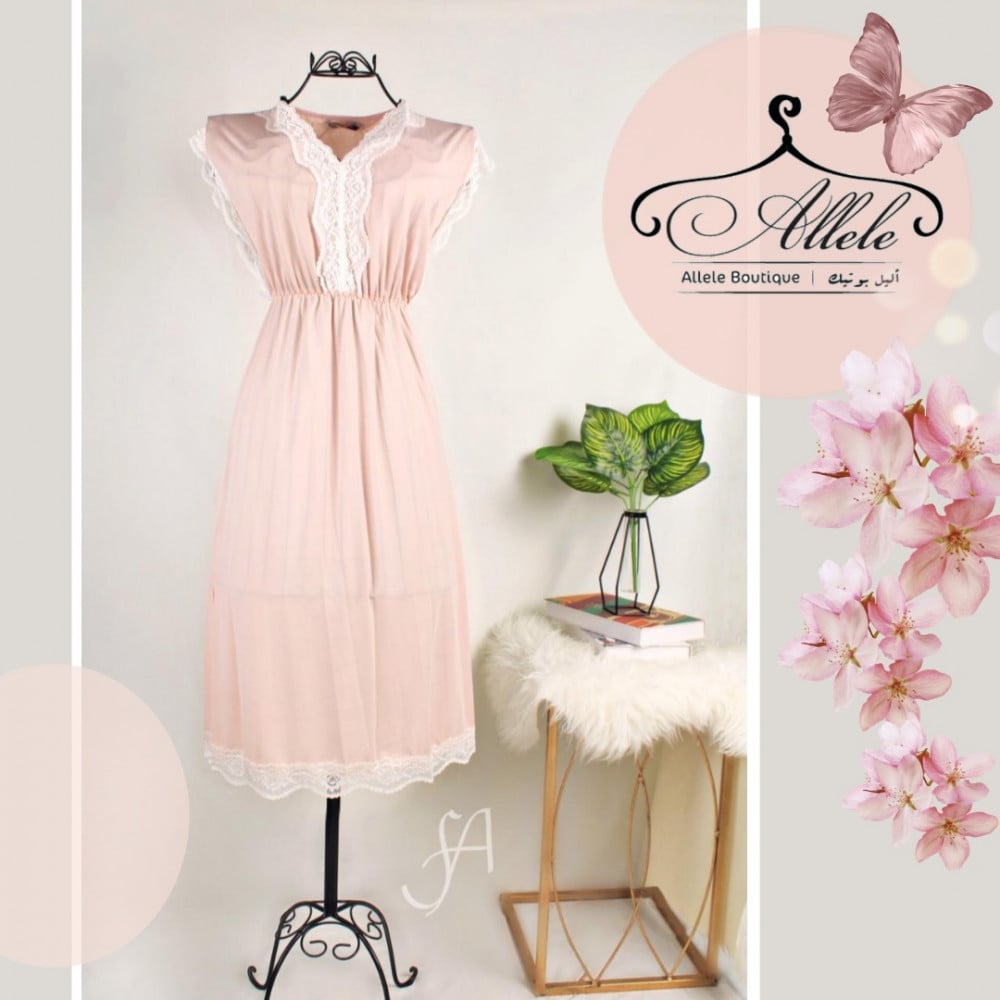 فستان ليلي ناعم بأطراف دانتيل ، متوفر ب ثلاث ألوان