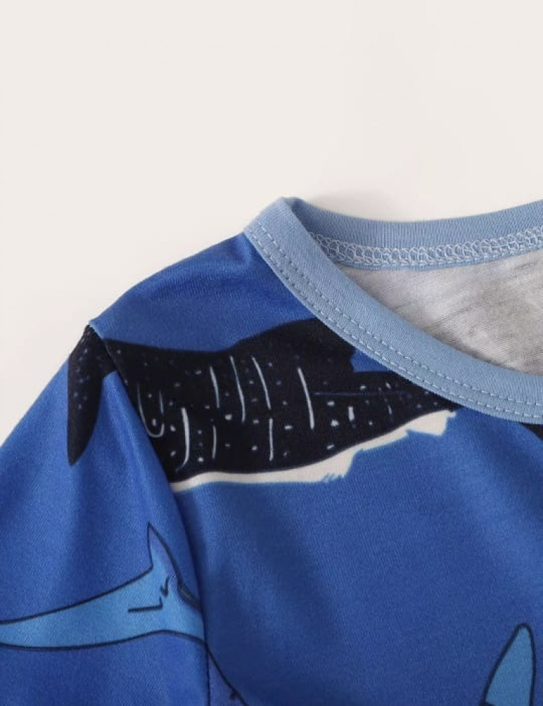 بيجامة ولادي بتصميم الحوت ، قطعتين ، لون أزرق