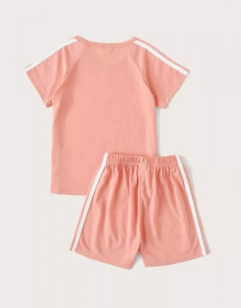 بيجامة بناتي برباط خصر وبشريط متباين ، لون وردي