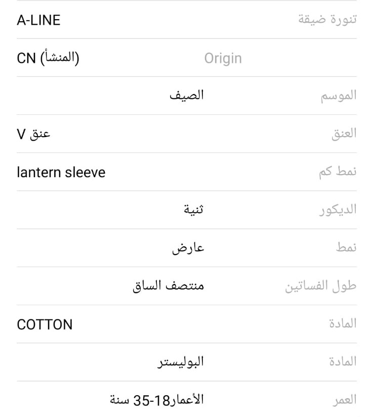 مقاس M : ( الصدر : 100 سم , الخصر : 82 سم ، الطول العام: 110 سم )
