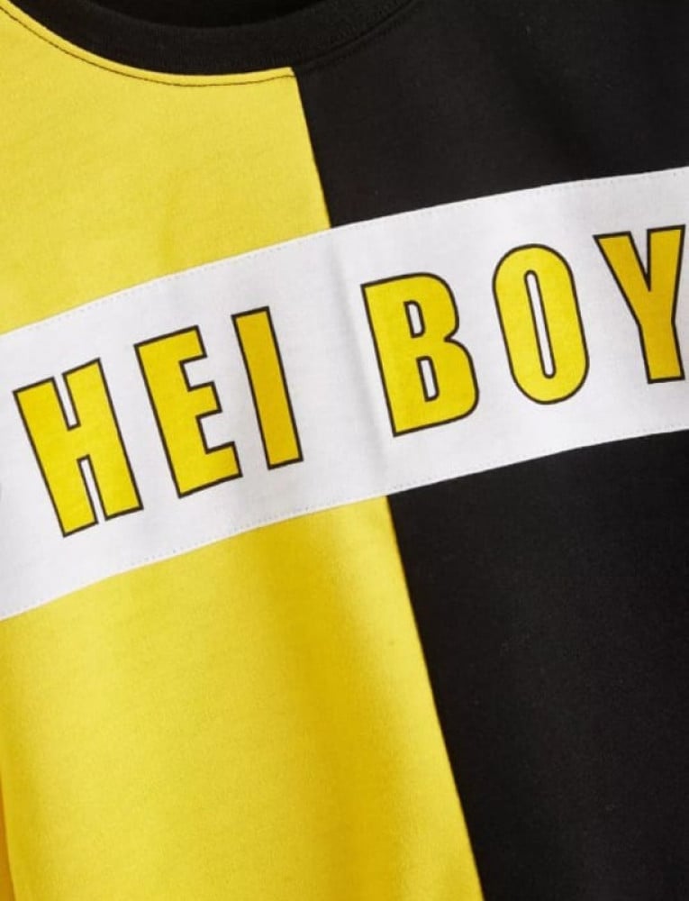 بلوفر ولادي بتصميم جرافيك عبارة ، لون أسود/أصفر