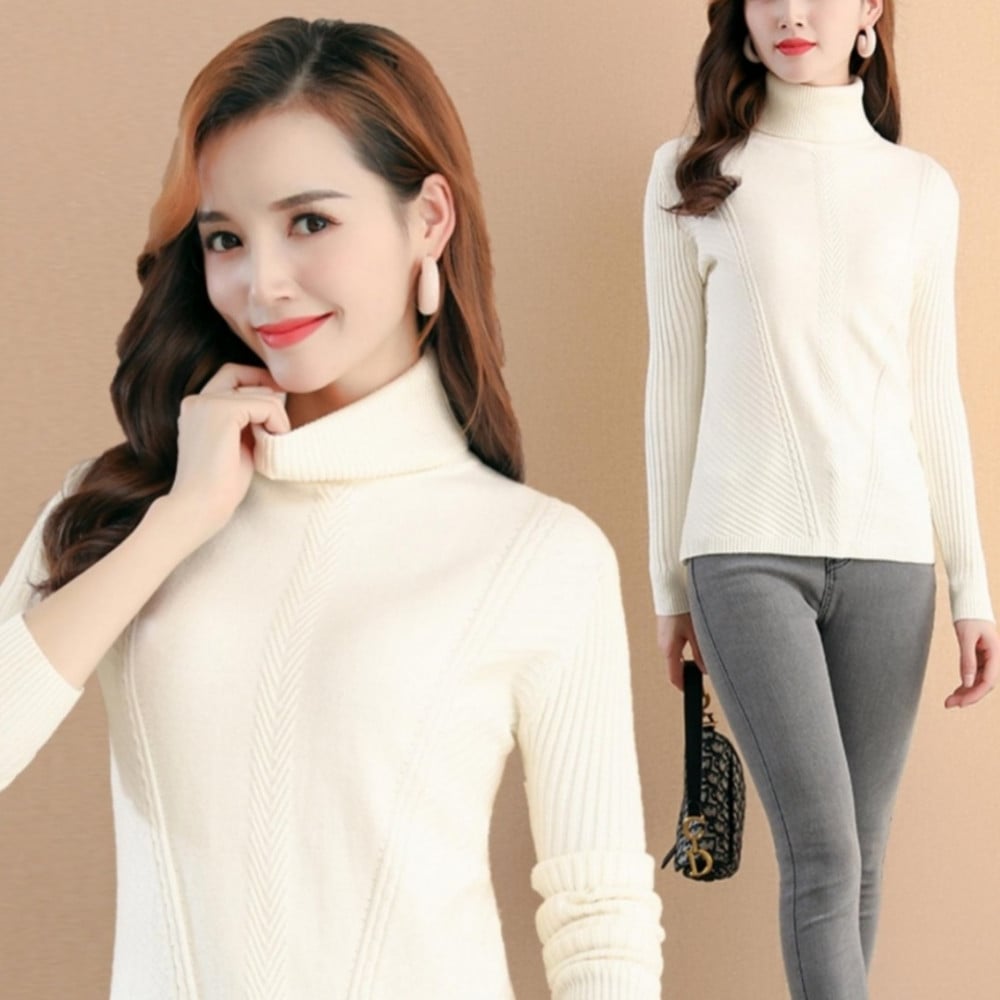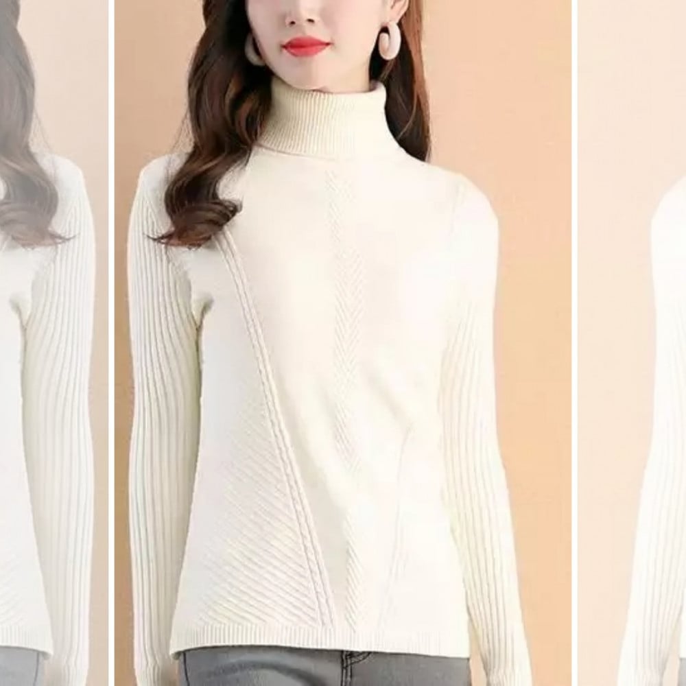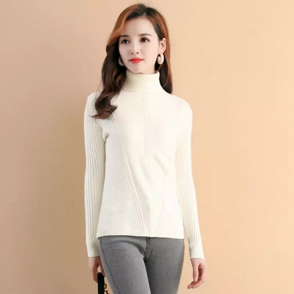 بلوفر صوفي نسائي بتصميم مخطط ، لون أبيض