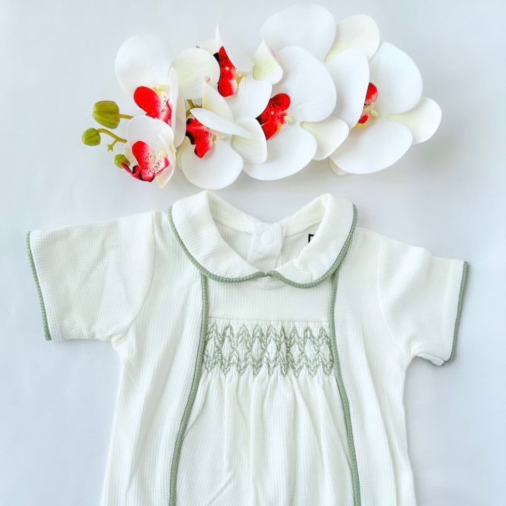 ▫️رومبير اطفال راقي بلون الابيض والبيبي بينك او البيبي قرين خامة ممتازه مع طباعه حرف المولود على الياقه(متوفر جميع المقاسات)