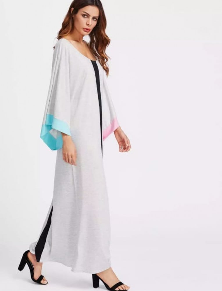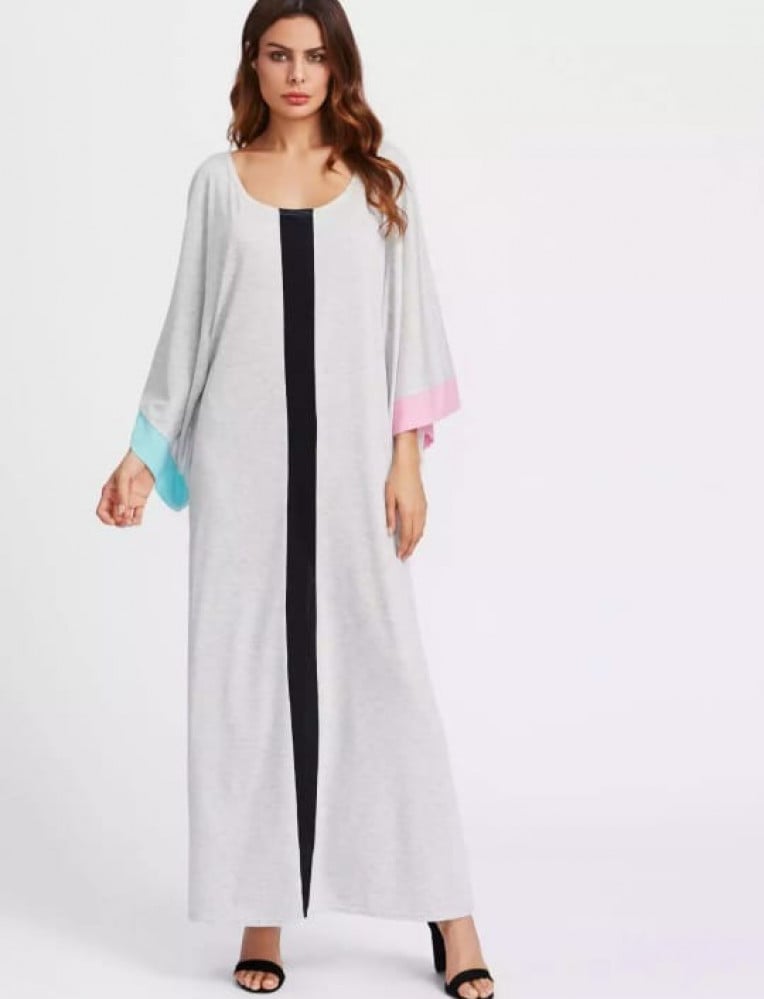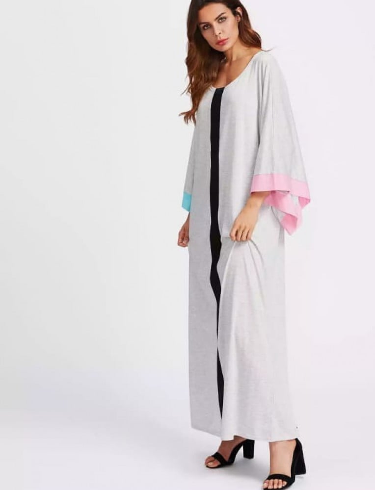 فستان نسائي طويل بأكمام عريضة ، لون رمادي